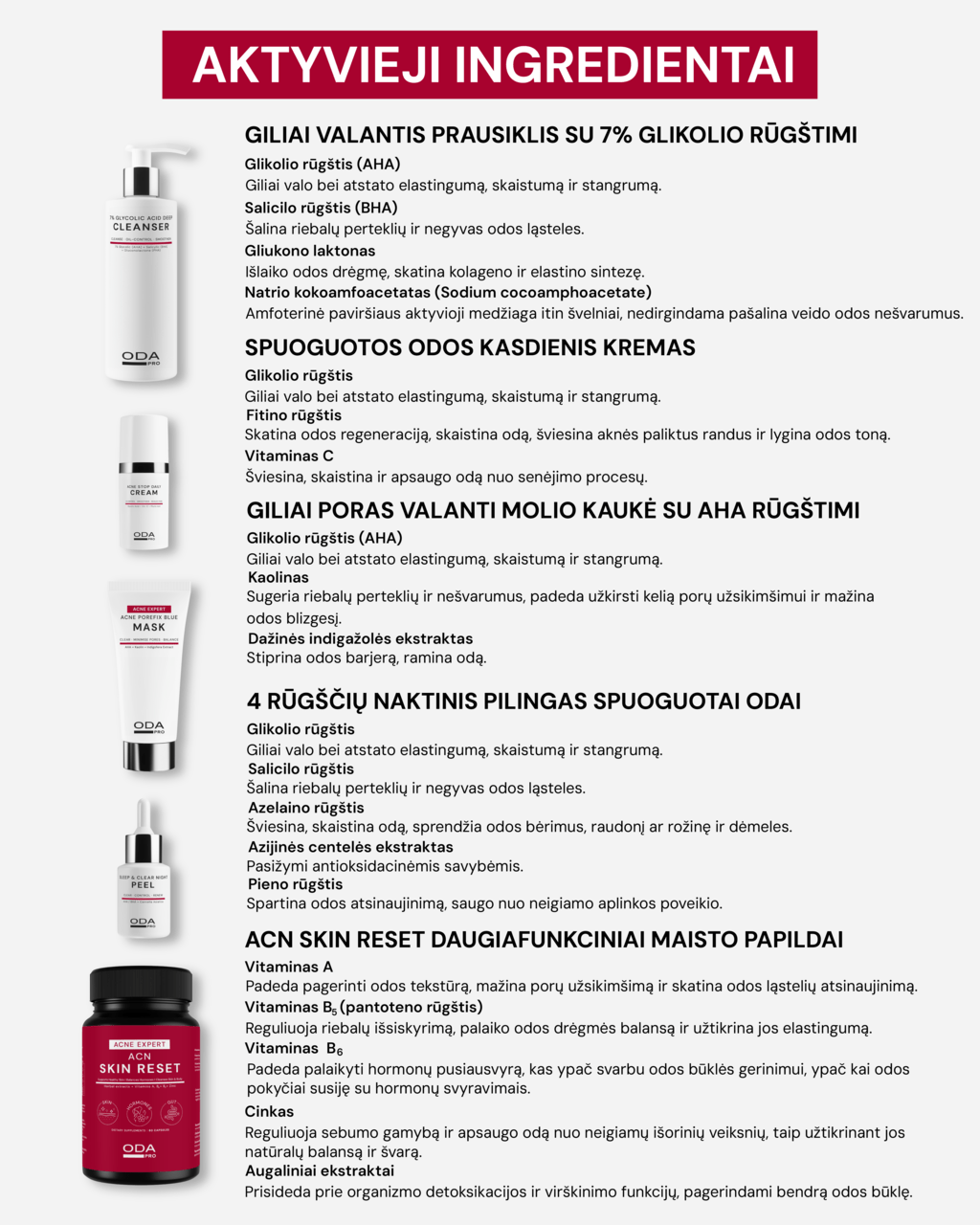 AKTYVI FORMULĖ: Fitino rūgštis + Glikolio rūgštis + Vitaminas C